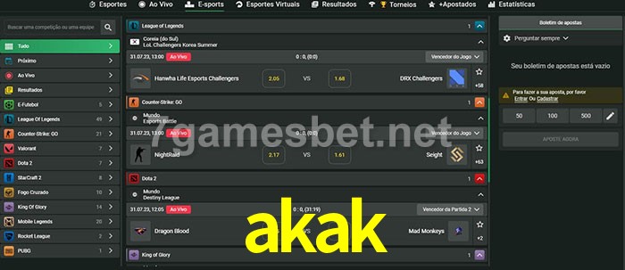 A aposta akak oferece aos jogadores a experiência mais conveniente de apostas em eSports!